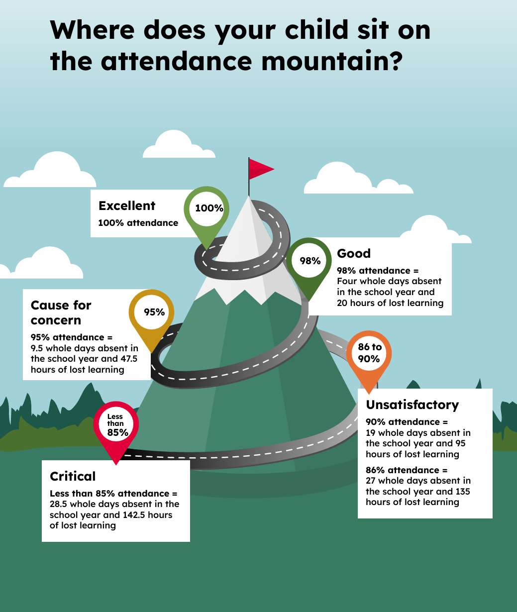 All parents/carers want the best for their children and for them to get on well in life and a good education plays a vital role. Education provides a means of enhancement for all young people and we recognise the importance of regular school attendance and the effect this has on learning. It is for these reasons we want to work in partnership to ensure our children get the best out of school, we therefore, need everyone’s support, particularly the support and encouragement of parents/carers to ensure the highest levels of attendance for our children.