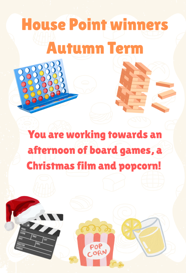 At the end of each term, the winning house enjoys a treat with Mrs Brogan and staff.